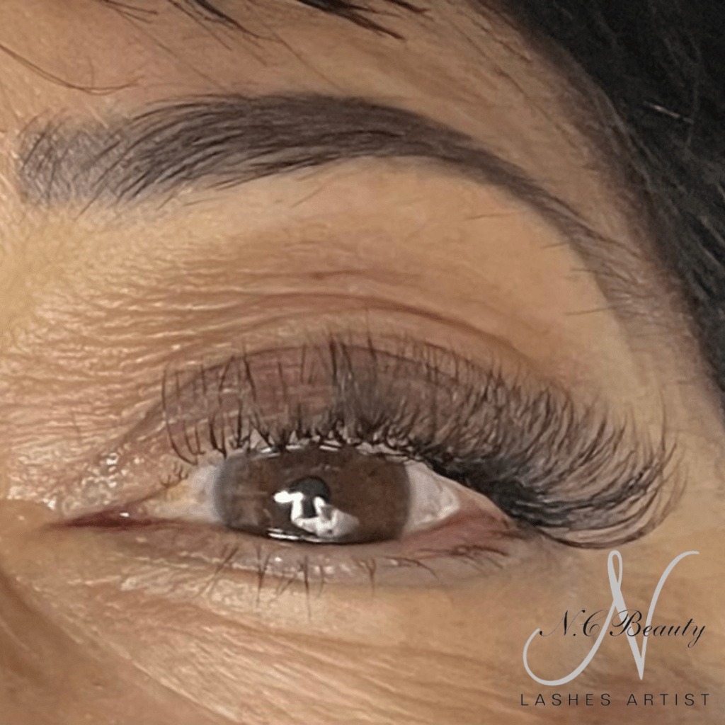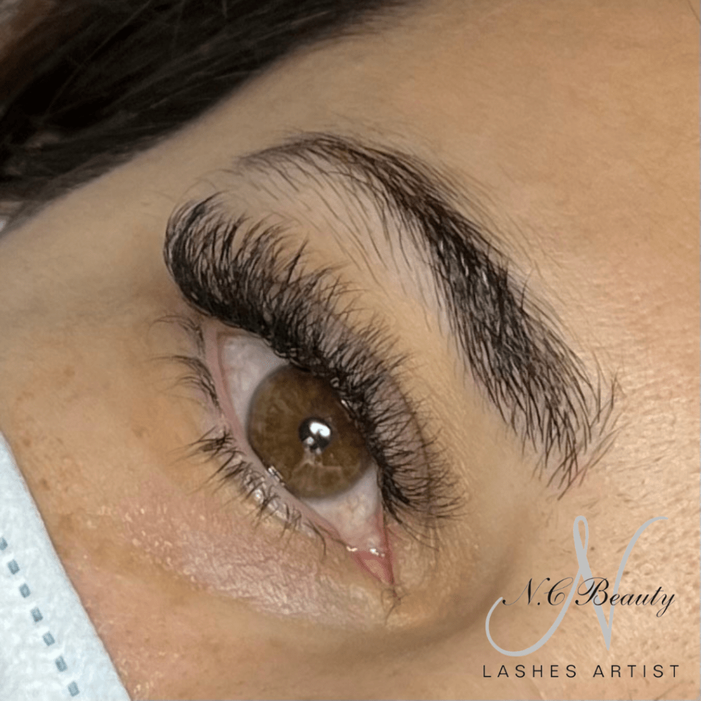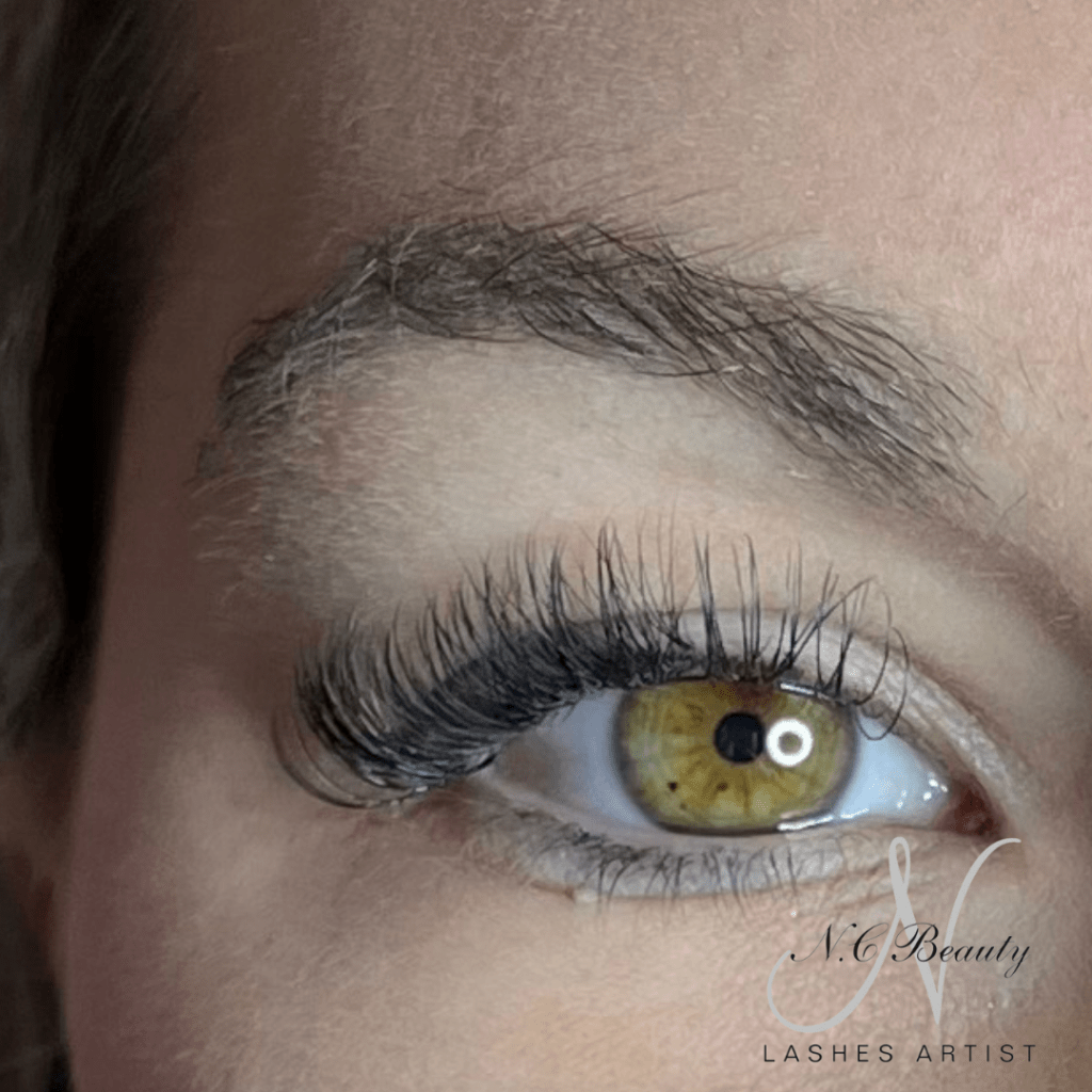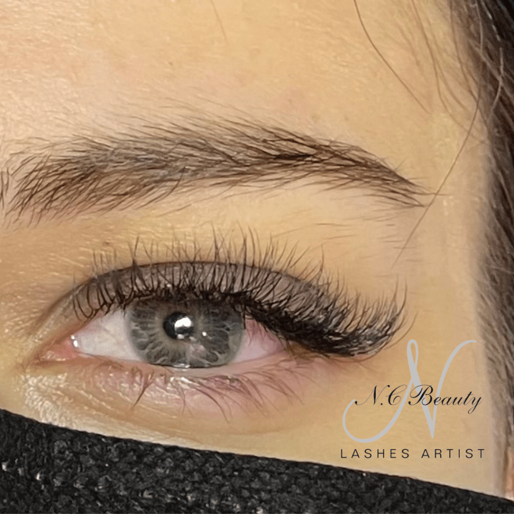 L’extension mixte est un méthode qui consiste à alterner entre un cil en soie et un bouquet de plusieurs cils afin de donner un aspect un peu plus fourni. Les cils sont collés uniquement sur les cils adultes.